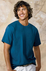 6.1 oz., 100% preshrunk ringspun cotton t-shirt. Tag-free neck label. Lay flat collar. Coverseam stitched around neck. Taped shoulder to shoulder. High-stitch density