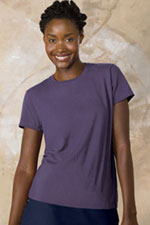 4.5 oz., 100% preshrunk combed ultra-soft ringspun cotton jersey knit t-shirt. Tag-free neck label. Classic feminine fit. Set-in rib knit collar with coverseam stitching. Double-needle stitched sleeve and bottom hem.